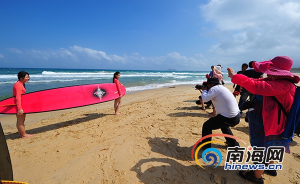 采風(fēng)團成員大贊,日月灣沖浪還是萬寧的一張絢麗的國際名片。 (南海網(wǎng)記者秦彥攝)