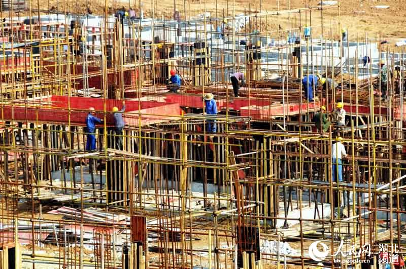 9月22日,建筑工人正在加快建設(shè)湖北省鄖縣鄖陽島各項(xiàng)旅游項(xiàng)目,會展中心、鄖陽老街復(fù)建、明代府學(xué)宮大成殿復(fù)建、觀景大道、旅游碼頭、渡假村等項(xiàng)目建設(shè)有的己經(jīng)完工,有的己經(jīng)收尾,有的加緊建設(shè),不出幾日長水的漢江江水將圍住鄖陽島,島上旅游已成雛形。(周家山 攝)