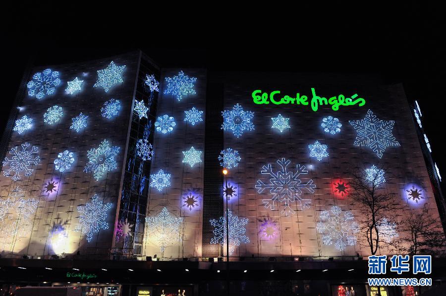 12月11日,西班牙馬德里市中心的一座建筑點亮圣誕燈飾。圣誕將近,馬德里市政府在市中心的9條街道安裝夜景照明裝飾,預計花費約170萬歐元,較去年增長7.2%。 謝海寧 攝