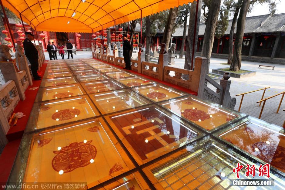 2015年2月15日,河南洛陽關林,1000塊金磚鋪就的“黃金大道”鋪設完工。