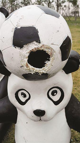 丹鳳公園9月開園后,成為丹陽市民游玩休閑的“新寵”。6日上午,記者在丹鳳公園看到,在迎來客流高峰的同時,不文明現象也如影隨形。記者發現,游樂設施不少已經被摧殘得“缺胳膊斷腿”,《捉妖記》的熱映讓胡巴成為眾多孩子心目中的“寶貝”,但公園內大部分胡巴頭頂的綠發被揪得蕩然無存,其中一只胡巴更是被拽倒在地而四腳朝天;而在熊貓雕像處,“受傷”的也占了大多數。