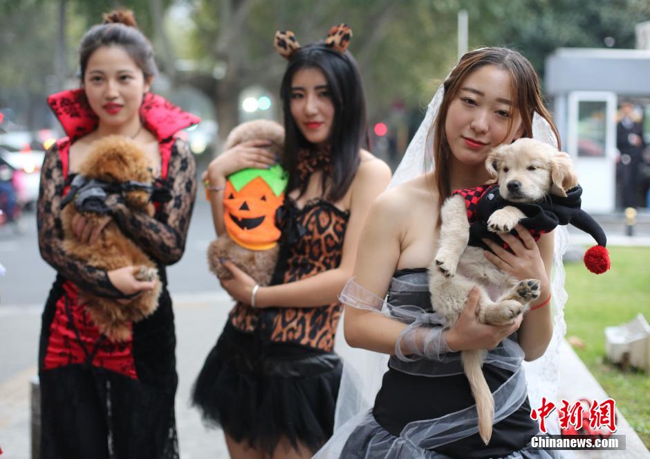 10月29日,四位南京美女帶著她們的寵物狗,精心打扮后在街頭以“戀愛(ài)么么噠”為主題,為犬友相親交友聚會(huì)拍攝一組以戀愛(ài)為主題的視頻短片,在萬(wàn)圣節(jié)到來(lái)之際上傳網(wǎng)絡(luò)與網(wǎng)友分享互動(dòng)。 中