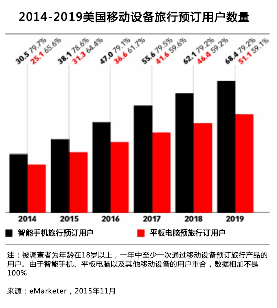 今年大概有62%的休閑游游客通過移動設備制定旅行計劃,同比增長了26%,明年這一數字預計將升至73%。