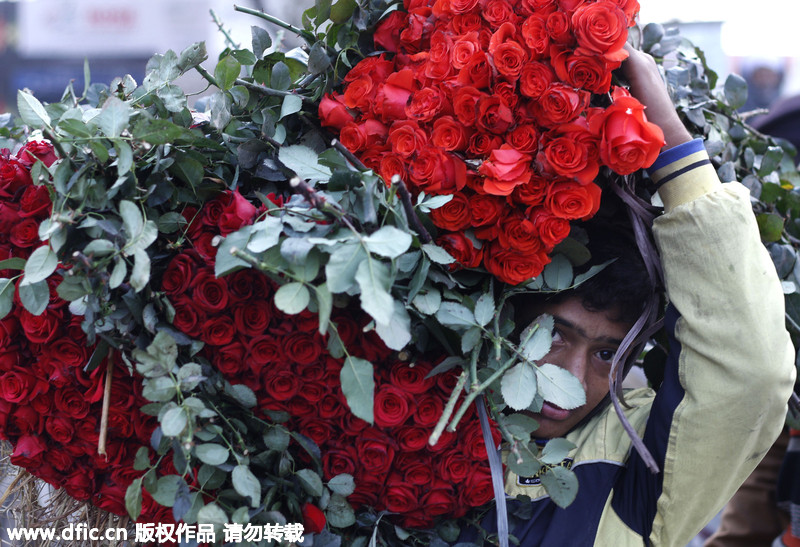 情人節將至巴基斯坦鮮花市場火爆