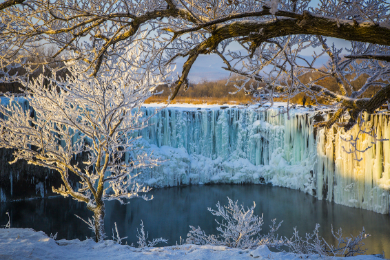 千里冰霜、萬里雪飄,當所有的江河湖泊都被冰雪所覆蓋,與銀白色的大地融為一體,分不清那里是河流那里是陸地的冬日牡丹江,一定不能錯過的:要到吊水樓一看那晶瑩綺麗冰瀑。在我國東北黑龍江境內,那個聞名全國的瀑布——吊水樓瀑布。又稱鏡泊湖瀑布,形狀好像加拿大尼亞加拉大瀑布,是我國緯度最高的瀑布。也是瀑布跳水第一人——狄煥然,表演懸崖跳水的地方。