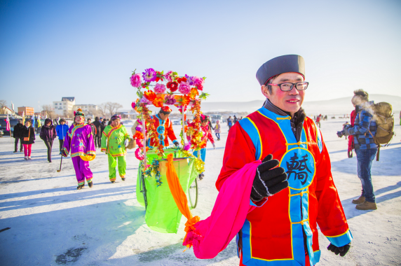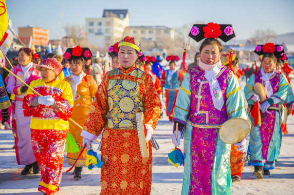 本屆冬捕節開幕式民俗文化活動表演“大浪花秧歌漁家樂”省級非物質文化遺產項目——寧古塔正白旗葉赫勒氏家族第十四代傳承節目“大浪花秧歌漁家樂”寧安市臥龍鄉羅成溝村組成的大概70位演員傾力出演。身穿傳統滿、漢服裝的男女老少則吹起嗩吶、敲起太平鼓,舞起扇子,扭起秧歌,盡情揮灑著鏡泊湖的熱情。這個冬季給大家帶來了不一樣的熱鬧與歡樂。