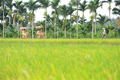 游人在瓊海田野公園騎行。特約記者 蒙鐘德 攝