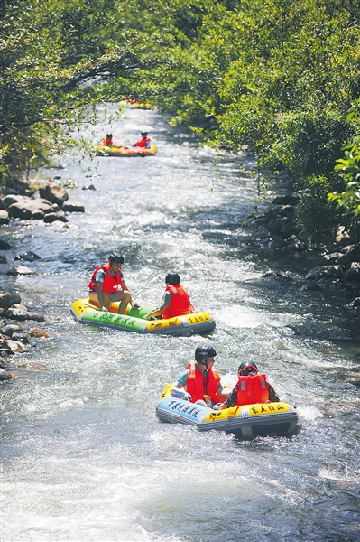 游客在五指山萬泉河漂流。 本報記者 袁琛 攝