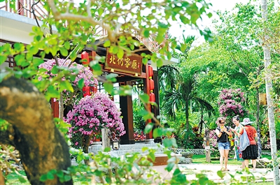 看得見山,望得見水,留得住鄉(xiāng)愁。“村游”是近幾年瓊海旅游的流行詞。北仍村景觀設(shè)計時尚又古樸,一處設(shè)施一個點綴,看似是隨意而為,卻又是匠心獨運。檳榔、椰子樹環(huán)抱著村莊,古樸的民居與田園密林相映成趣。村里不設(shè)圍墻,天地密林就是天然屏障。你可以繞著環(huán)村8公里的綠道騎行,可以在草寮咖啡屋和好友閑聊打發(fā)時間,也可以到檳榔林中的鄉(xiāng)愁味道農(nóng)家樂、北仍大客廳去品味地道的鄉(xiāng)村美食。